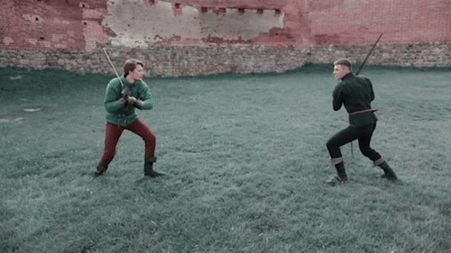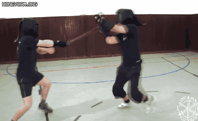 서로의 무기를 맞대고 힘겨루며 서로 할말 다하기