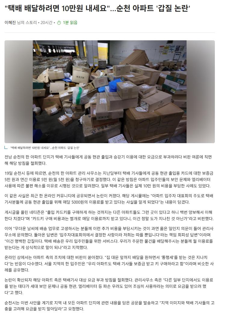 배달을 하고싶으면 통행료를 내놔라 | 제목 | 글쓴이 | 조회수 |
