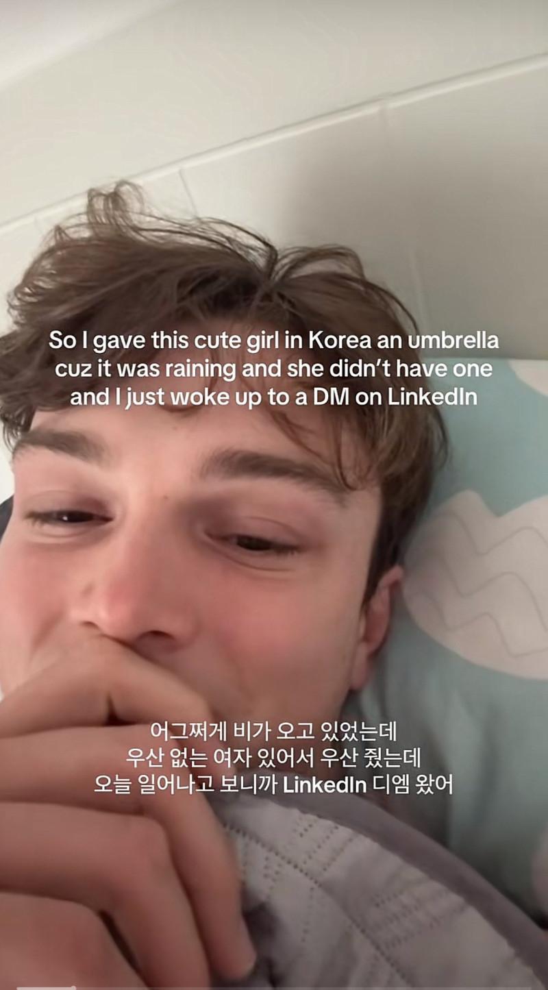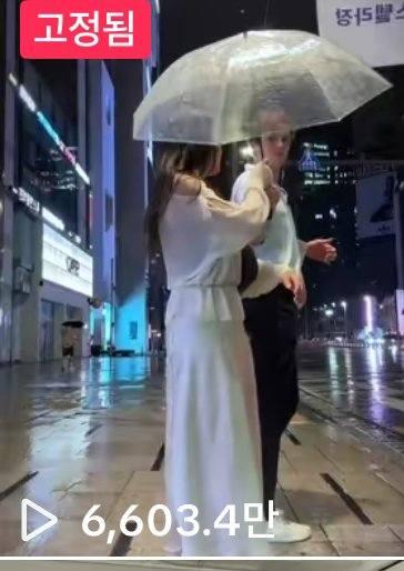 릴스 촬영하던 여자에게 우산을 건내준 외국인 남성