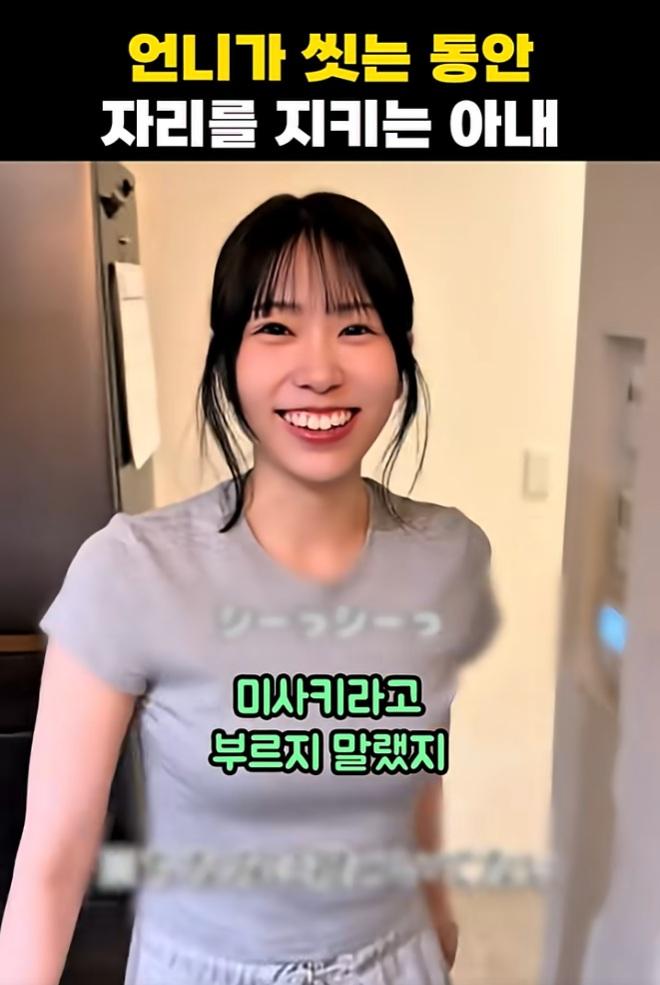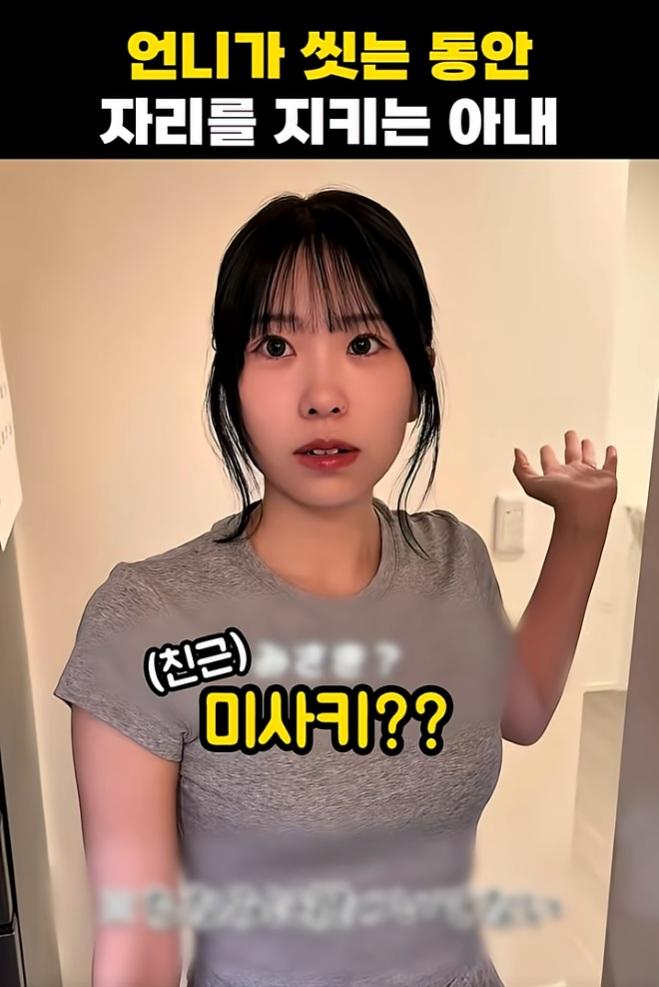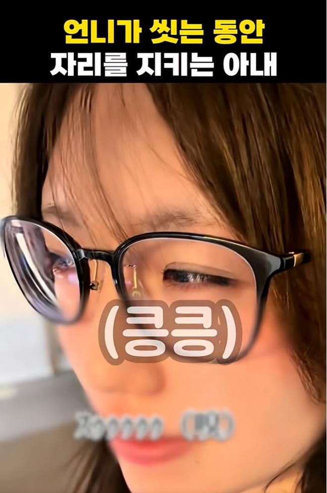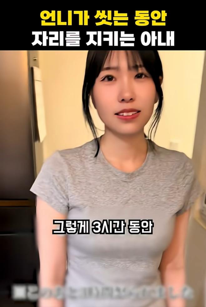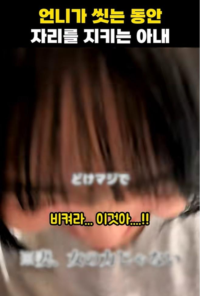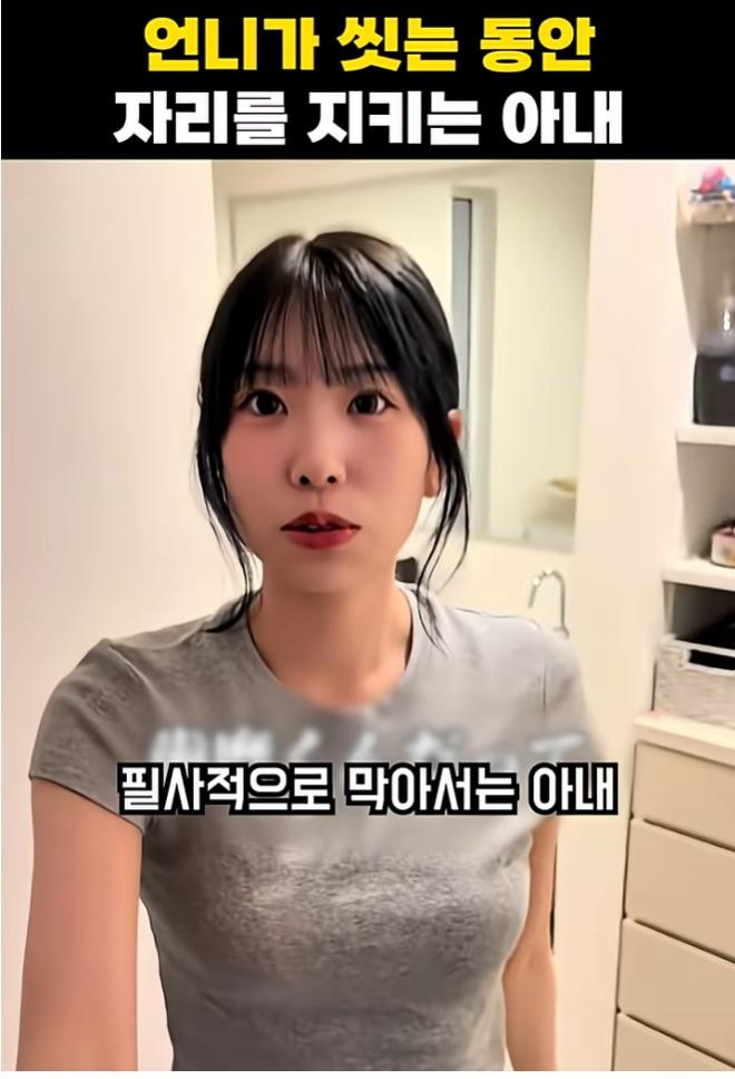 화장실에 가려는데  언니가 샤워중이라서 막고 있는 아내